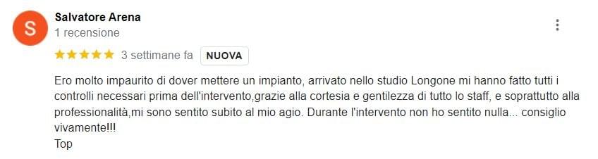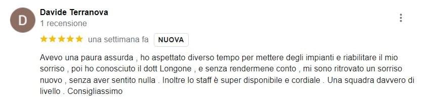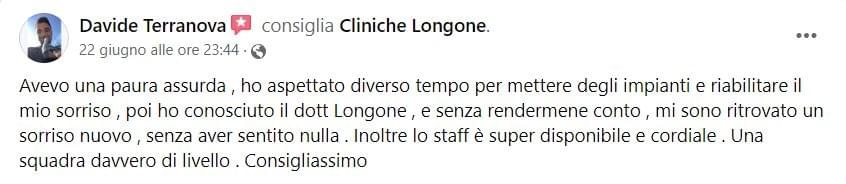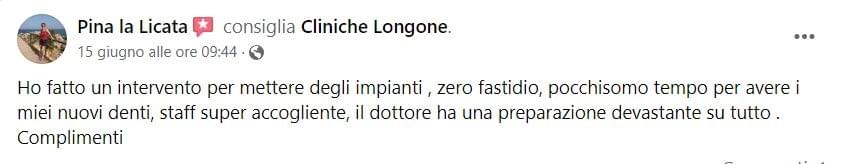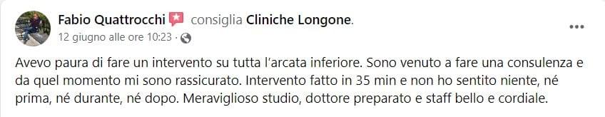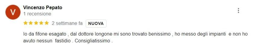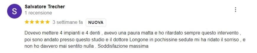 “Mi sono trovato bene nella clinica del dottor Longone per mettere gli impianti dentali.